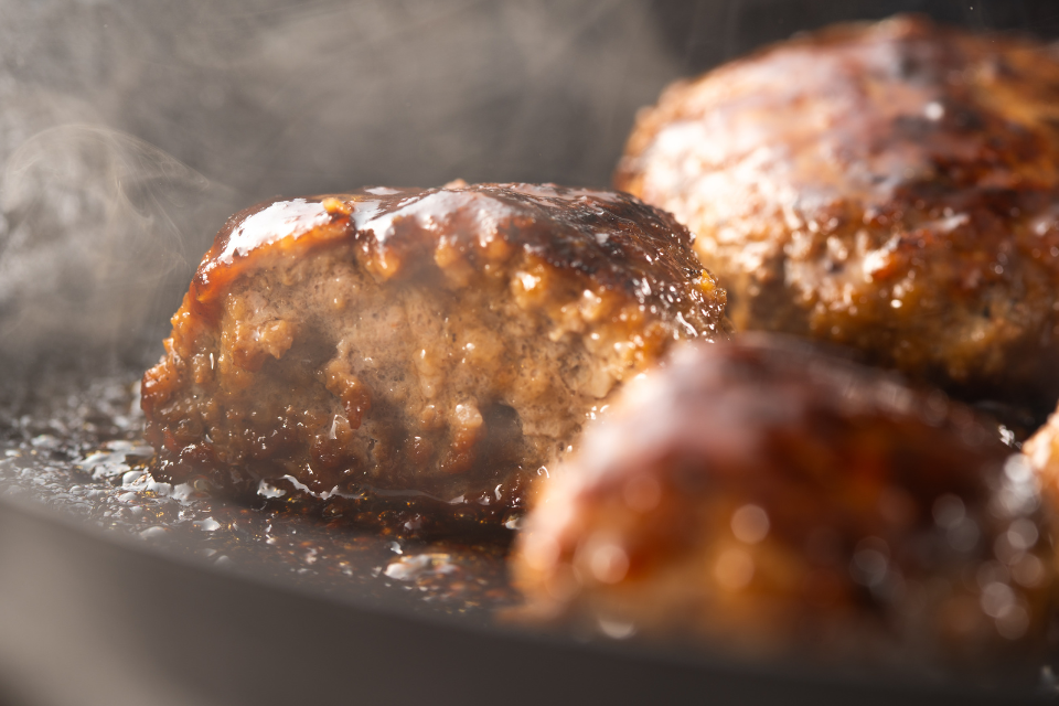 【里山牛ハンバーグセット】余分な脂がなく、赤身の旨みが詰まった牛肉本来の濃厚な味わい。黒毛和牛の適度な脂と赤身の旨み・風味が詰まったハンバーグを是非ご堪能ください。
